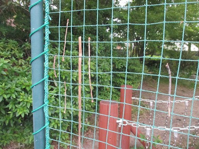 防球ネットに枯れ葉が引っかかっていたので、同じように取ろうとつまんだところ、くにゃあっと体をくねらせ、動き始めたのでした。