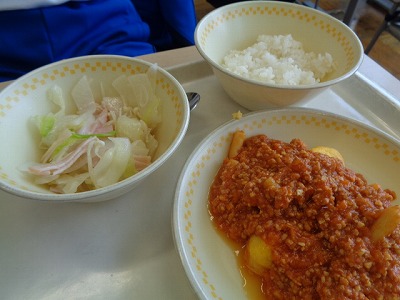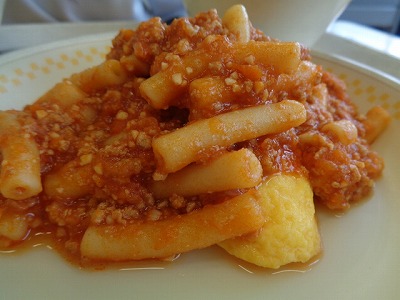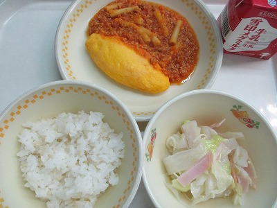 ミートソースは、ミキサーで細かくした大豆を加えています。トマトピューレ、ケチャップを使ったミートソースは、トマトのうま味成分「グルタミン酸」がたっぷりです。肉や魚介類と組み合わせると、相乗効果でいっそうおいしさが増します。トマトのリコピンは、抗酸化作用で高血圧を予防してくれます。