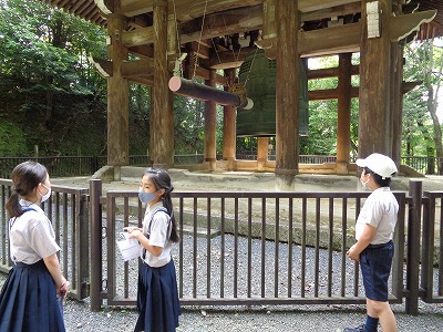 次に、大鐘楼を見学しました。大晦日に「行く年 来る年」でよく見られる日本最大級の有名な釣り鐘です。