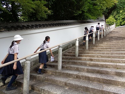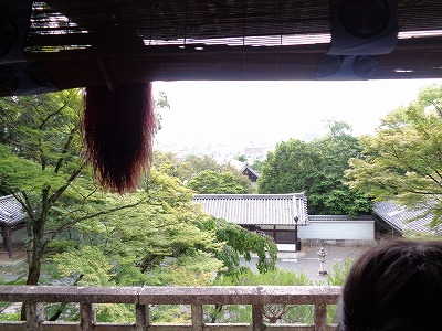 山門の階上には上がれませんが、石階段を上がることで、二条城や御所が見える景色をイメージしました。急な階段を一気に駆け上がりました。
