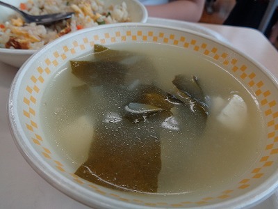 豆腐のスープは、わかめと玉ねぎが入っています。