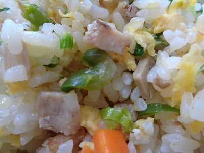 焼き豚、人参、ピーマン、ねぎ、卵の入った「五目チャーハン」です。
