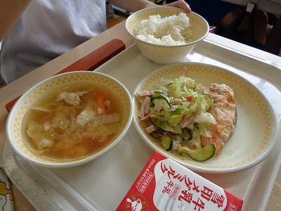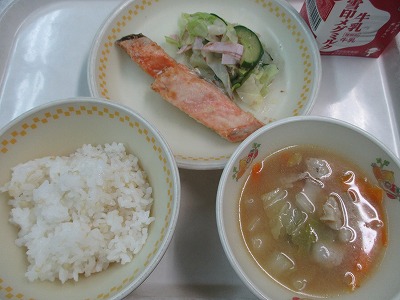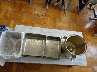 * ところで、こちらは、ある学年の食缶です。毎日、全部、おいしく頂いています。 食品ロス「ゼロ」を意識して感謝して食べています。
