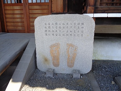 お堂の横の仏足石を見ました。お釈迦さまの足跡とされています。足が大きく平らで「土踏まず」がないことを聞いて驚きのメンバー。