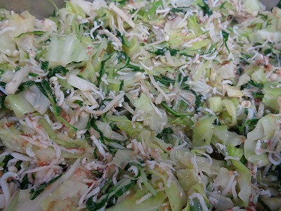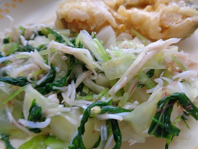 水菜はゆがいて調理していますが、火を通してもシャキシャキとした良い歯ごたえの残る野菜です。よく噛んでいただきました。