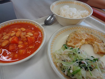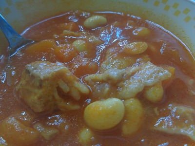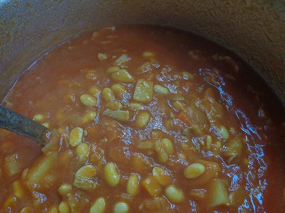 大豆、じゃがいも、にんじんが入ったポークビーンズです。