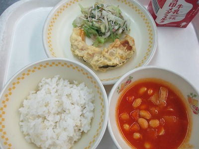 じゃがいもは、ホクホクした食感がおいしいです。トマトピューレとケチャップで、トマトのうま味がたくさん入っています。