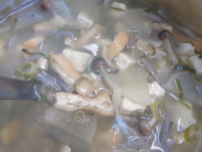 豆腐と油揚げを使ったけんちん汁は、出汁の風味がよく効いていました。