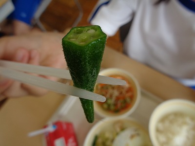 今週は夏野菜が毎日登場する献立になっています。2日目は「オクラ」です。