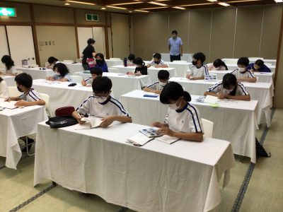 夕食を食べた後、明日に向けてのグループ分けをして、一人一人が今日の活動のまとめをしました。
