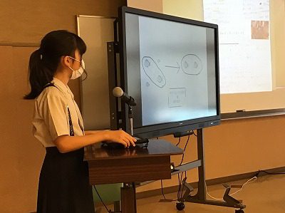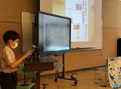 いよいよ報告会の始まりです。自宅での作業や夏休みの後半に登校して作った新聞には、印象に残った活動を紹介しています。