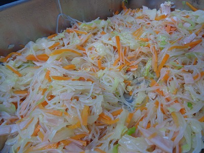 きゃべつや人参の野菜も合わせて、色あいも華やかになりました。