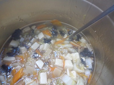 うま味がさらに強くなった干ししいたけを使うと、うま味の相乗効果でおいしさが倍増します。全体的にとろっとした五目豆腐に、コリコリとしたきくらげの食感も加わって、噛みごたえもある料理です。