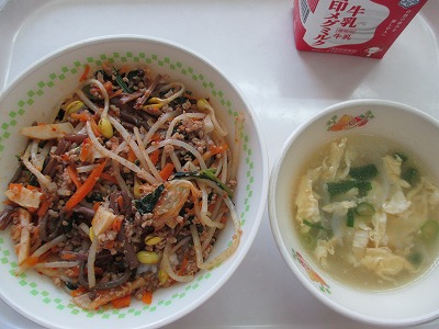 豚ひき肉と野菜がたっぷり入ったビビンバです。
