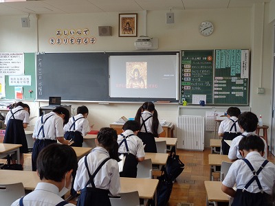 静かに学校生活の一日が始まりました。身支度・整理整頓・学習の準備を済ませて、足の裏を床につけ姿勢よく待つことができています。よい一日のスタートが切れました。