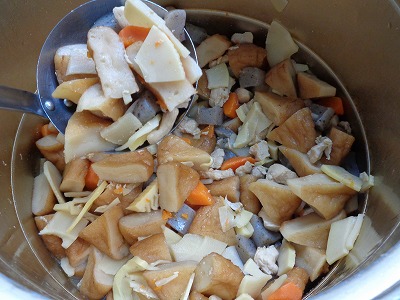 ☆ 平天とこんにゃくの煮物は、筍、人参、鶏肉を合わせました。