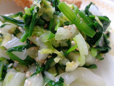 胡麻は、よく炒って「いりごま」にしてあります。白菜はビタミンCの多い野菜です。そのため風の予防に効果があります。冬が旬の白菜は10月を過ぎたころから、甘味が増しさらにおいしくなるそうです。
