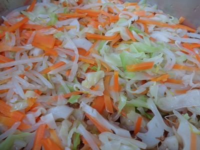 ☆ キャベツ、もやし、人参、竹輪のおひたしです。