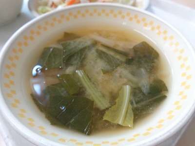 シャキシャキ小松菜が入った味噌汁をおいしくいただきました。