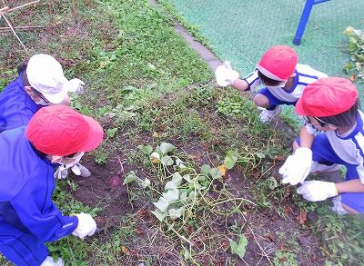 This morning the 2nd grade class picked sweet potatoes from the school garden. Next month they will eat them together for lunch.