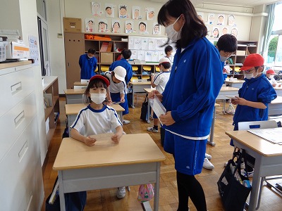 班長の6年生を見つけて、手を挙げたり、「ここだよ~」と意思表示をしていました。