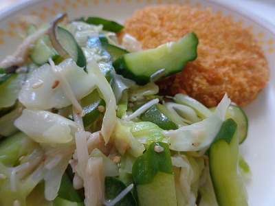 ☆ 昆布和えは、塩昆布を使って作ります。浅漬けのような和え物に仕上がりました。きゅうり、えのき、キャベツなど、シャキシャキと歯ごたえの良い野菜をたくさん使いました。