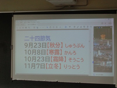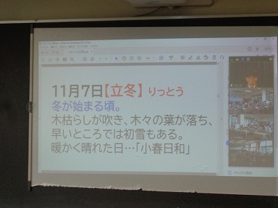 木枯らしが吹き、木々の葉が落ち、早いところでは初雪もあります。「小春日和」という言葉も教わりました。