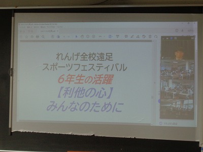 行事でのれんげ班の「協力」や、一人ひとりの「全力」が光りました。また、6年生が「全校みんなのために..」の気持ち「利他の心」で、とても一生懸命がんばっていました。校長先生から感謝とお礼の言葉がありました。