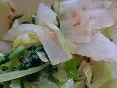 ☆ 大根、キャベツ、水菜のおひたしです。大根は、寒くなるこれからの季節に旬を迎える野菜です。