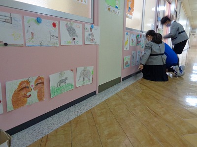 全校遠足で京都市動物園に行きましたが、館内には遠足の少し前の日まで動物画コンクールの展示がされていました。