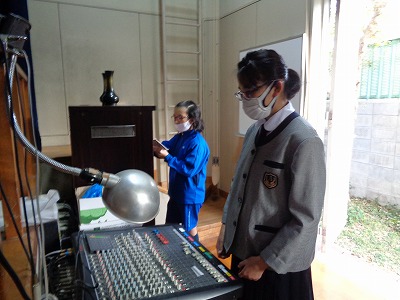 「学びと力の発表会」に向けて、体育館の放送機器周辺の清掃と機器チェックをしました。