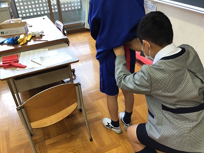 今日は、代表委員会に出席しない留守番隊メンバーで、班の人数が均等でない点を公平にできる方法を考えて、試しの練習をしました。しっぽに使う“はちまき”の数を同じにして対戦すれば、当日の人数も合わせられるという意見が出ました。