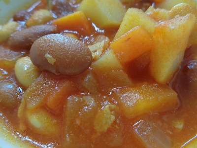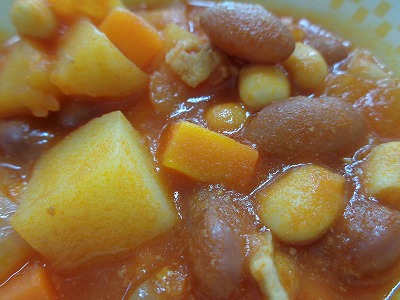 ☆ ポークビーンズは、じゃがいもや大豆、人参、豚バラ肉をトマトピューレやケチャップと一緒に煮込んだ料理です。