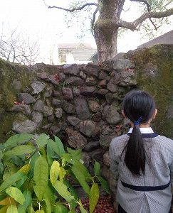 陽気な日差しの中、もっこ橋を渡って歴史散策です。