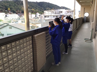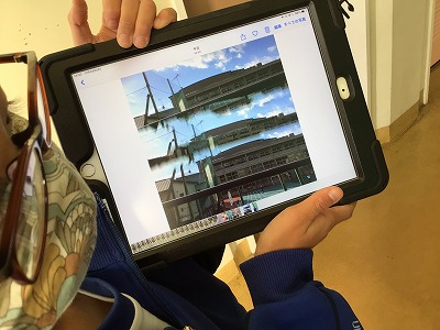 今回から、“パノラマ撮影”機能を使った「フォトアート作品」を撮影し、マイギャラリー制作を始めています。今日は、素材を集めに、校内を巡りました。