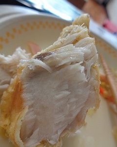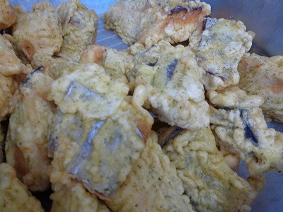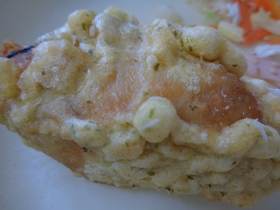 ☆ さごしに青のりを混ぜた天ぷらの衣をつけて揚げました。