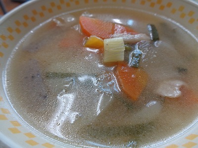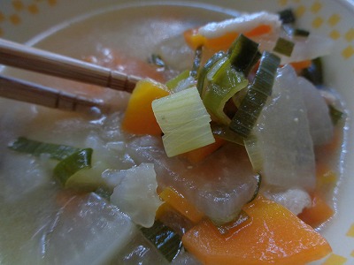 じゃがいもは、崩れないように一度蒸して混ぜました。豚肉の脂がよく効いて、お味噌汁をおいしく仕上げてくれました。