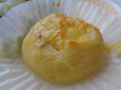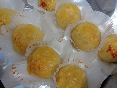 立派なさつまいもの皮をむいて大きめに切った後、しっかり蒸してやわらかくしました。生クリームなどを混ぜて、丸めた後にもう一度オーブンで焦げ目がつくまで焼きました。感謝の気持ちでおいしくいただきました。