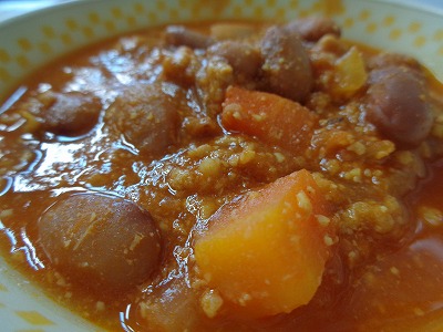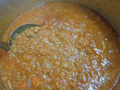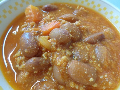 ☆ チリコンカーンは金時豆、人参、玉ねぎ、豚のひき肉を使いました。