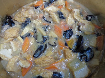 炒めながら煮込んでいくので、厚揚げにもよく味が染み込んでおいしくなります。