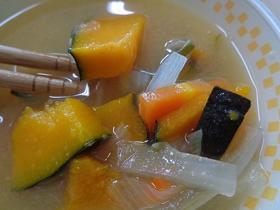 ☆ かぼちゃのオレンジ色がきれいな味噌汁です。