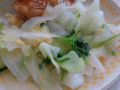 ☆ 卵あえは、炒り卵と大根、壬生菜、キャベツを合わせたおひたしです。