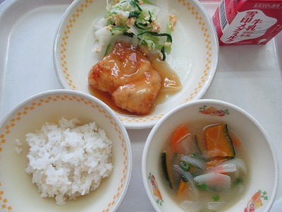 明日の献立は「豚肉のケチャップ焼き」です。お楽しみに!