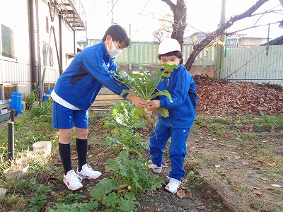 12/13月【1,6年生の大根収穫・しっぽとりトーナメント①・給食】