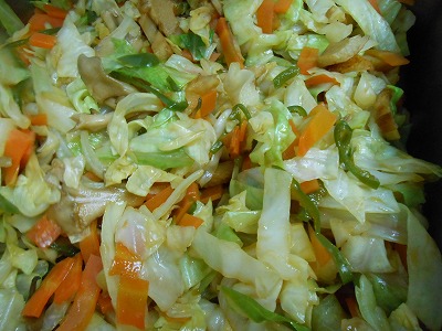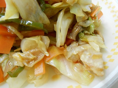 ☆ オイスターソース炒めはキャベツ、人参、ピーマン、まいたけ、竹輪を合わせてあります。