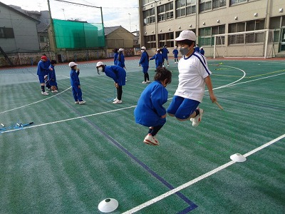 1年生は、6年生に跳び方のコツを教えてもらいました。