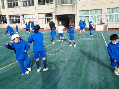 こちらは中間休みの1年生。ボールや縄跳びをして、休み時間の運動場を元気に駆けていました。