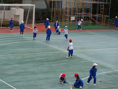 写真はドッジボールをしていますが、他にもなわとびや長なわ、リレーなど盛りだくさんでした。