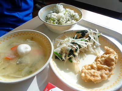 今日の給食は、お正月をイメージしたおめでたい色あいです。