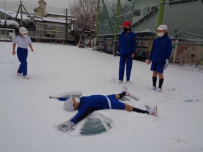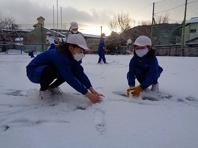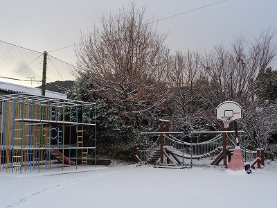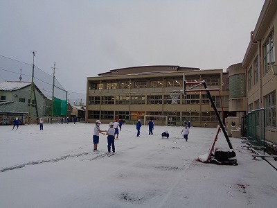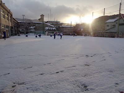早朝。"It was snowing outside this morning!" と言って、子ども達は運動場へ駆けて行きました!?